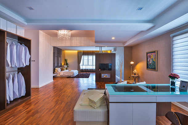 Luxurious Style. Generous in size, this master bedroom also features a huge wardrobe, a lounging area and a study area.