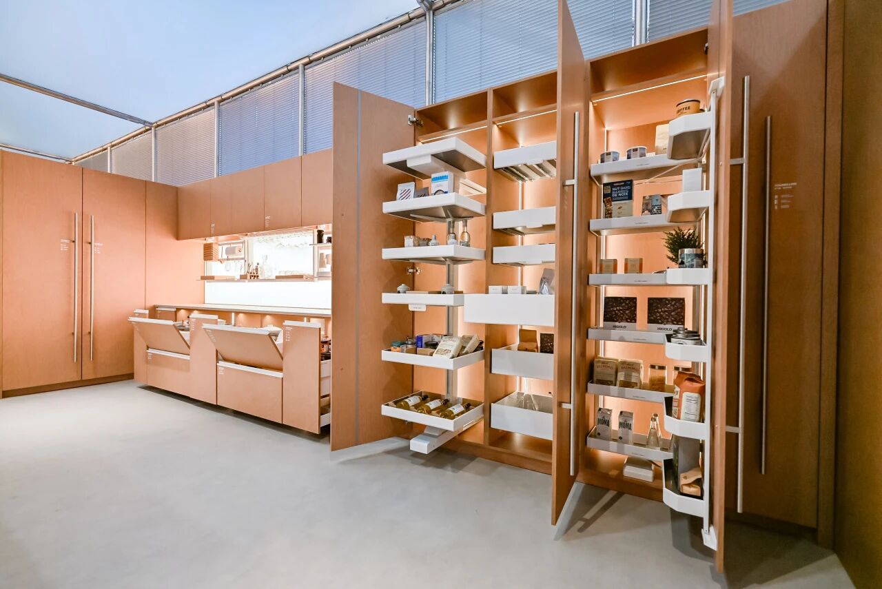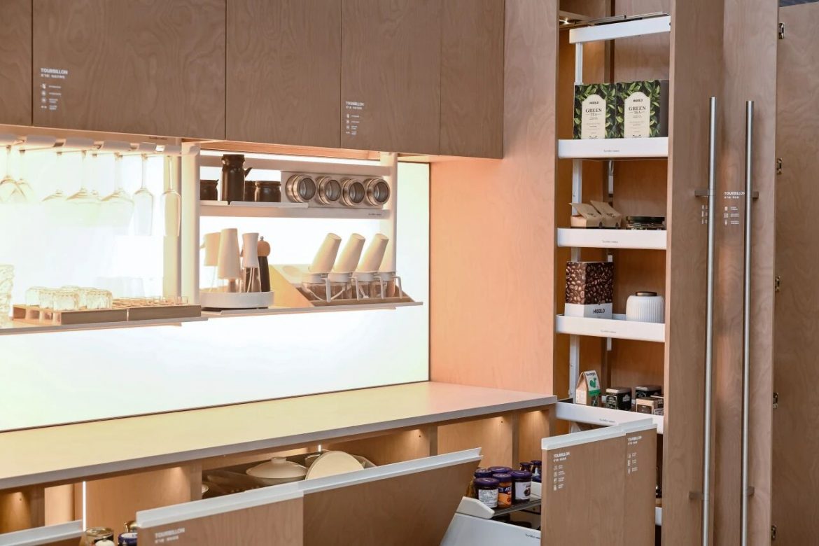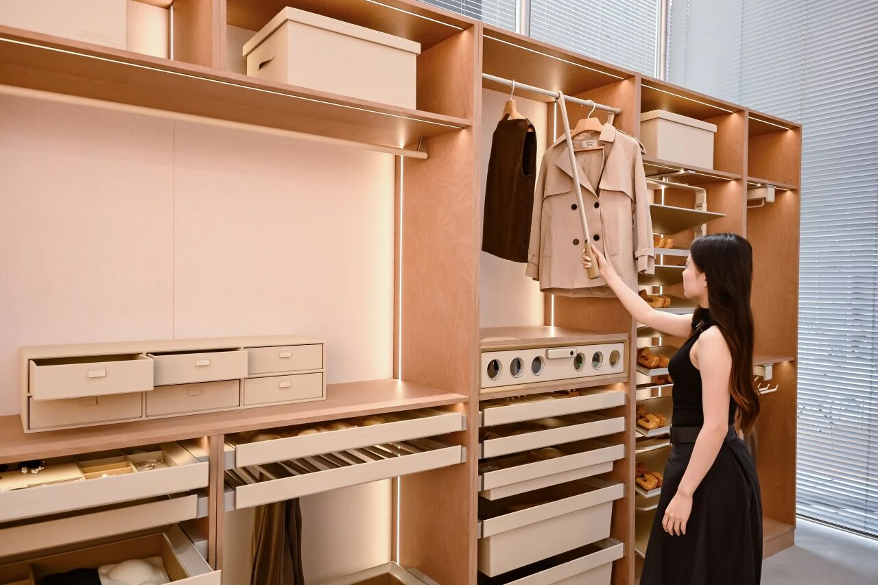 在悍高集團(HIGOLD)旗下國際高端品牌「陀飛輪·Tourbillon」的全球首展中,看見了義式極簡美學與機械工藝的巔峰融合,陀飛輪廚房與衣櫃系列,讓收納行為變成優雅的藝術呈現;DTC 東泰以旗艦款「博納多」板籃系列,通過自研的同步軌技術,解決了非標窄櫃的收納頑疾;OKIN 功能沙發與智能床的一站式解決方案,將搖擺放鬆與 AI 助眠功能結合,展示對人體健康的細緻關懷。