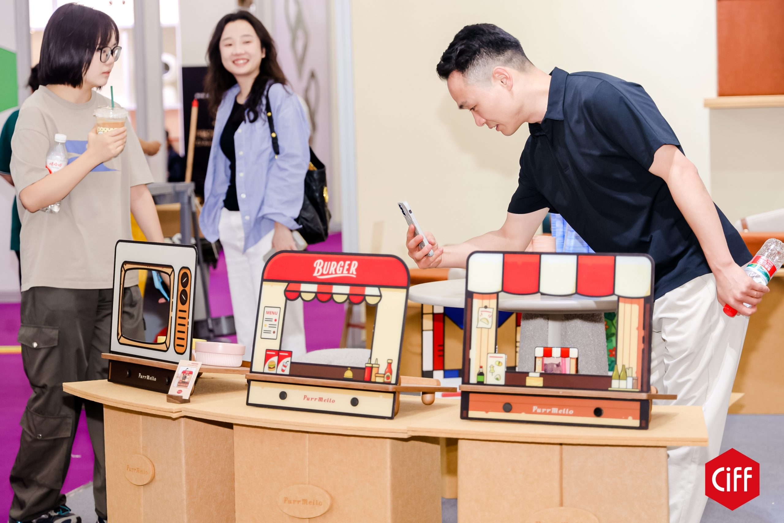 寵物家居區推出貓窩長椅、模組化寵物家具等產品,吸引眾多年輕觀展者駐足。隨著小戶型養寵成為主流,「模塊化、隱形化、多功能」已成為產品研發的關鍵詞。天元寵物(PETSTAR)從家具風寵物家居產品到自動餵食系統,積極將寵物需求融入居家風格,推動人寵共居從概念走向真實場景;酥呼(PURRMELLO)的蒙德寵物沙發系列,兼具實用與藝術性。