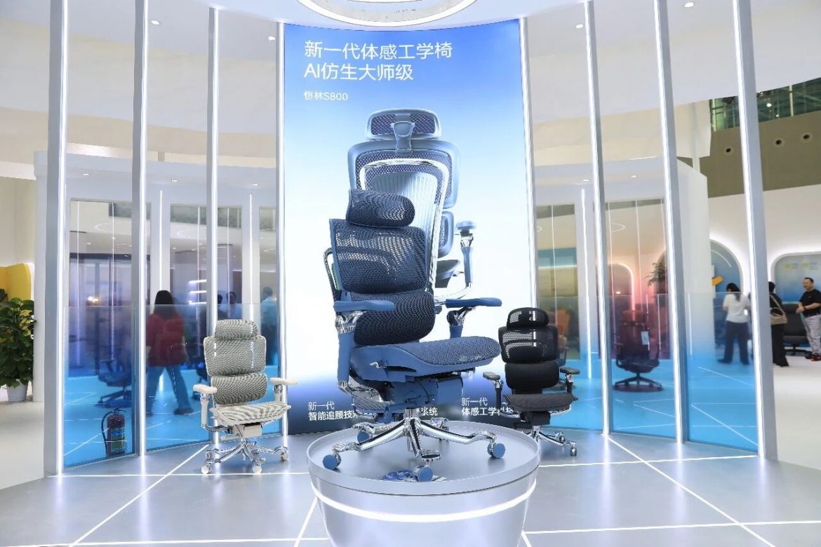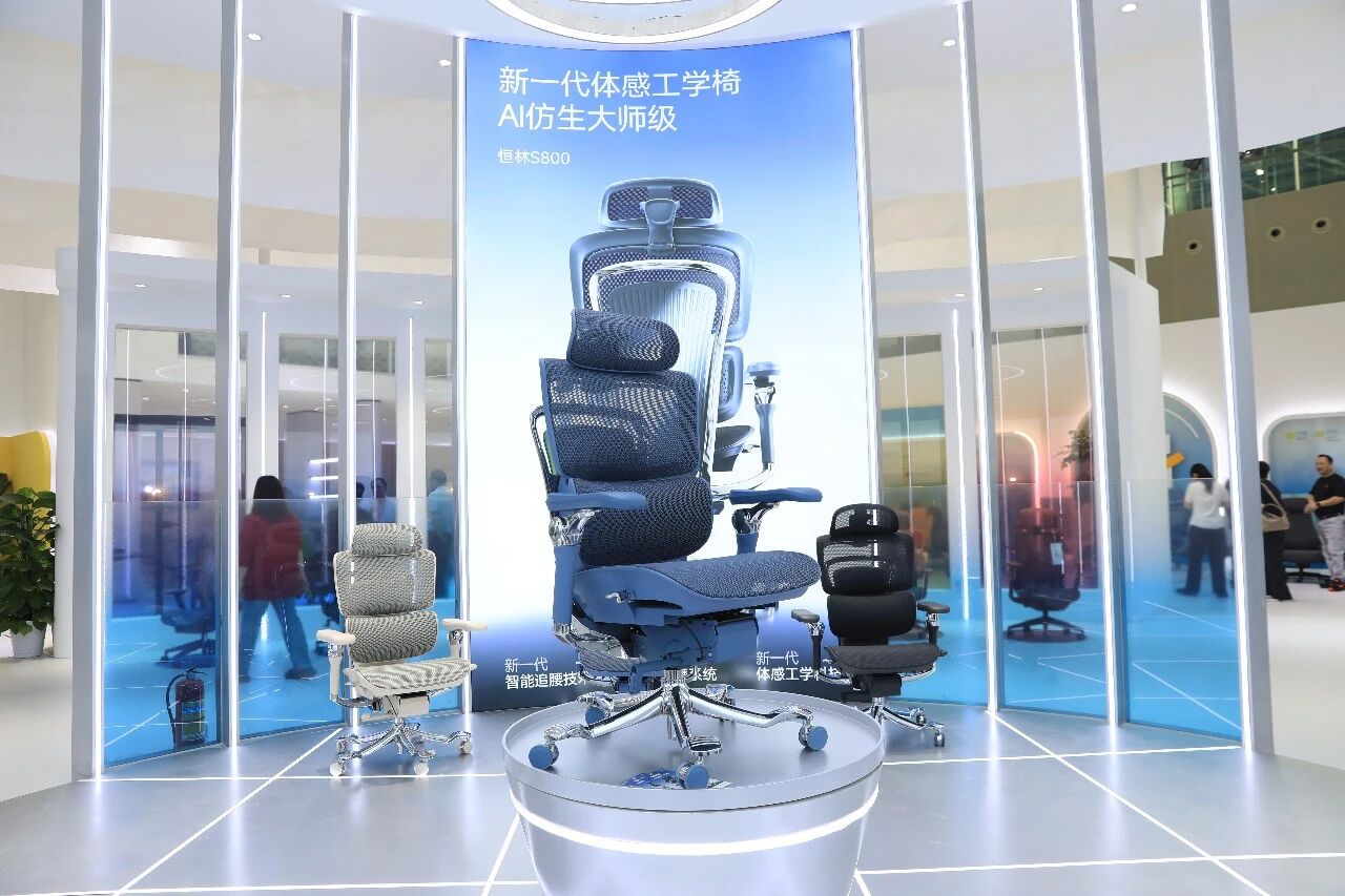 在辦公商用展,恆林家居(HENGLIN)一款 AI 體感工學椅 S800 在體驗者坐下瞬間,腰靠便自動前頂直至貼合腰部,並隨坐姿動態調整,體現出家具從「被動支撐」到「主動適應」的本質改變;永藝(UE)專注坐健康系統,從休閒椅到升降桌,每款產品都以人體工學為核心,強調長時間使用下的舒適性。