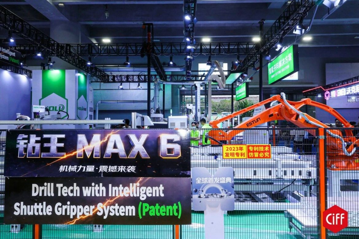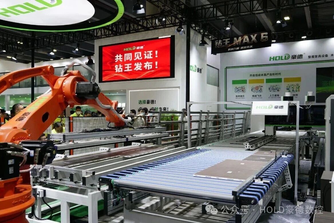 南興裝備(NANXING)帶來的智能電腦裁板鋸與激光封邊機,完成了對板式家具生產全流程的深度覆蓋;豪德數控(HOLD)全球首發的「鑽王・MAX 6」,透過 AI 智能路徑優化將效率提升了 60% 以上;富全智能(FORTRAN)的 S2928 Max 智能高速封箱機,將封箱、稱重貼標、Logo 印刷乃至機器人 AI 視覺下料整合為一體,實現了包裝流程的完全自動化。