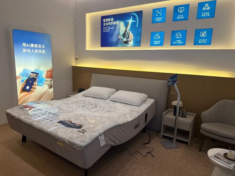 走進智能睡眠區,觀展者自然地躺下體驗、起身交流。從床墊到助眠系統,全流程產品清晰勾勒出睡眠科技正從「單品智能」跨入「全場景智慧」的新階段。SleepOne AI 床墊,實現了睡眠科技的重大突破,它無需依賴任何穿戴設備,便能精準捕捉人體生理數據,動態回應睡眠需求,將健康監測與舒適體驗完美融合。