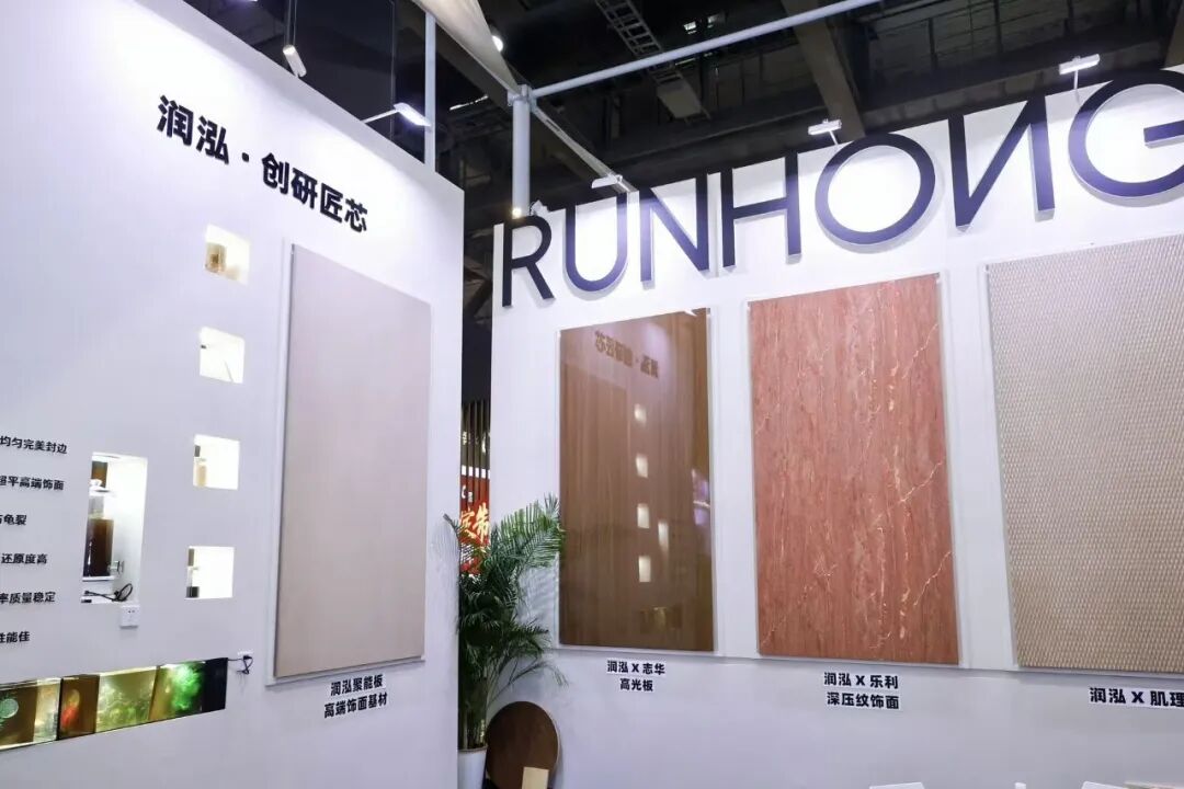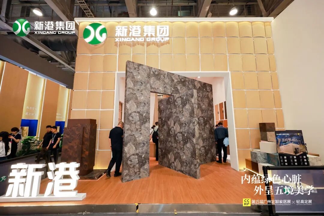 三棵樹攜小森板以「好漆好板好空間」為主題,從實木水漆大板展露的天然木紋肌理,到非遺大漆紋理板所迸發的東方色彩張力,將純淨的自然氣息與深厚的文化底蘊揉入板材;兔寶寶(TUBAO)全新打造的非遺系列,將福建大漆的斑斕深邃與巫溪嫁花的細膩工藝揉入家居飾材;魯麗木業(LULI WOOD)以全產業鏈智造為基底,透過全球首發的「無紙化直貼 PP 板」與「金魯麗新生境系列」,實現對可持續居住的承諾;新港集團(XINGANG GROUP)主推的「五境」系列,以仿生科技為底色,從東方美學的深處提煉出盛、雅、石、藝、雲五種空間意境,構築出完整的美學體系;萬華禾香(WANHUA)以「空間無醛」為主題,透過系統化的無醛裝修材料,回應了現代人對「健康無醛家」的渴望。
