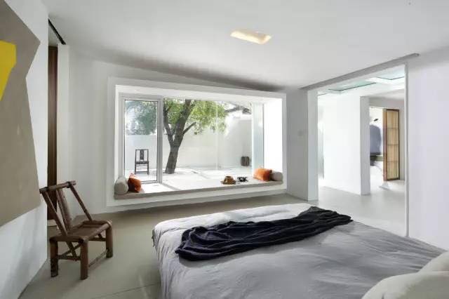 - 为了让空间更为宽敞,他把储藏室和卧室打通,并且用玻璃将两个区域连接起来,形成隔而不断的布局。