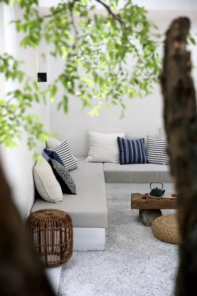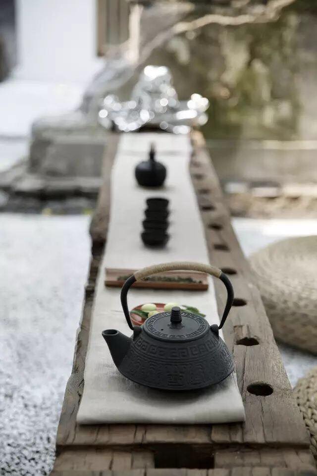古色古香的茶几,运用的是老房子中所拆下的老木梁,全然不觉是再循环的木块。