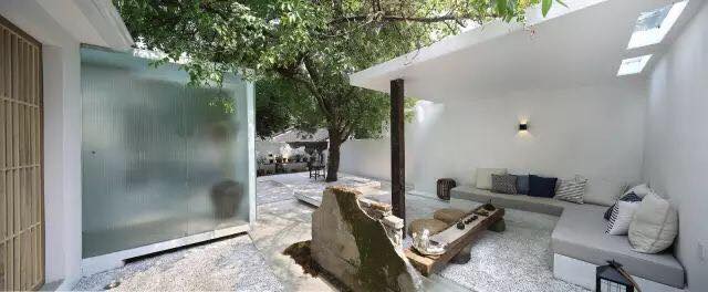 整个庭院的设计,围绕着一颗绿意盎然的老枣树。另外,院子里还有着足够的水渠设计,让雨季不足以造成老人的困扰。院子里的半开放茶室,绝对会是老人品茶与好好休息的好地方。