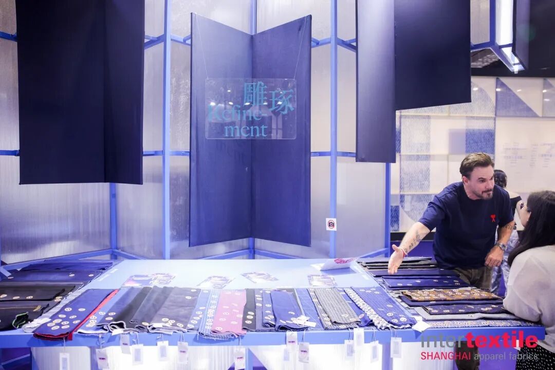 「雕琢」主張舒適的原色丹寧,透過絎縫、提花等工藝創造出立體紋理;「流淌」主題下的彩牛織物以柔和的質感,突破了傳統牛仔的硬朗,實現了「松弛療癒美學」;在「藏蘊」區域裡,中藍色持續流行,強調舒適的麻質手感和日常功能性;而「光影」區域,展示面料的混色視覺、花樣雪尼爾外觀,搭配運動丹寧織物,打造前衛、炫酷的新式運動風格。