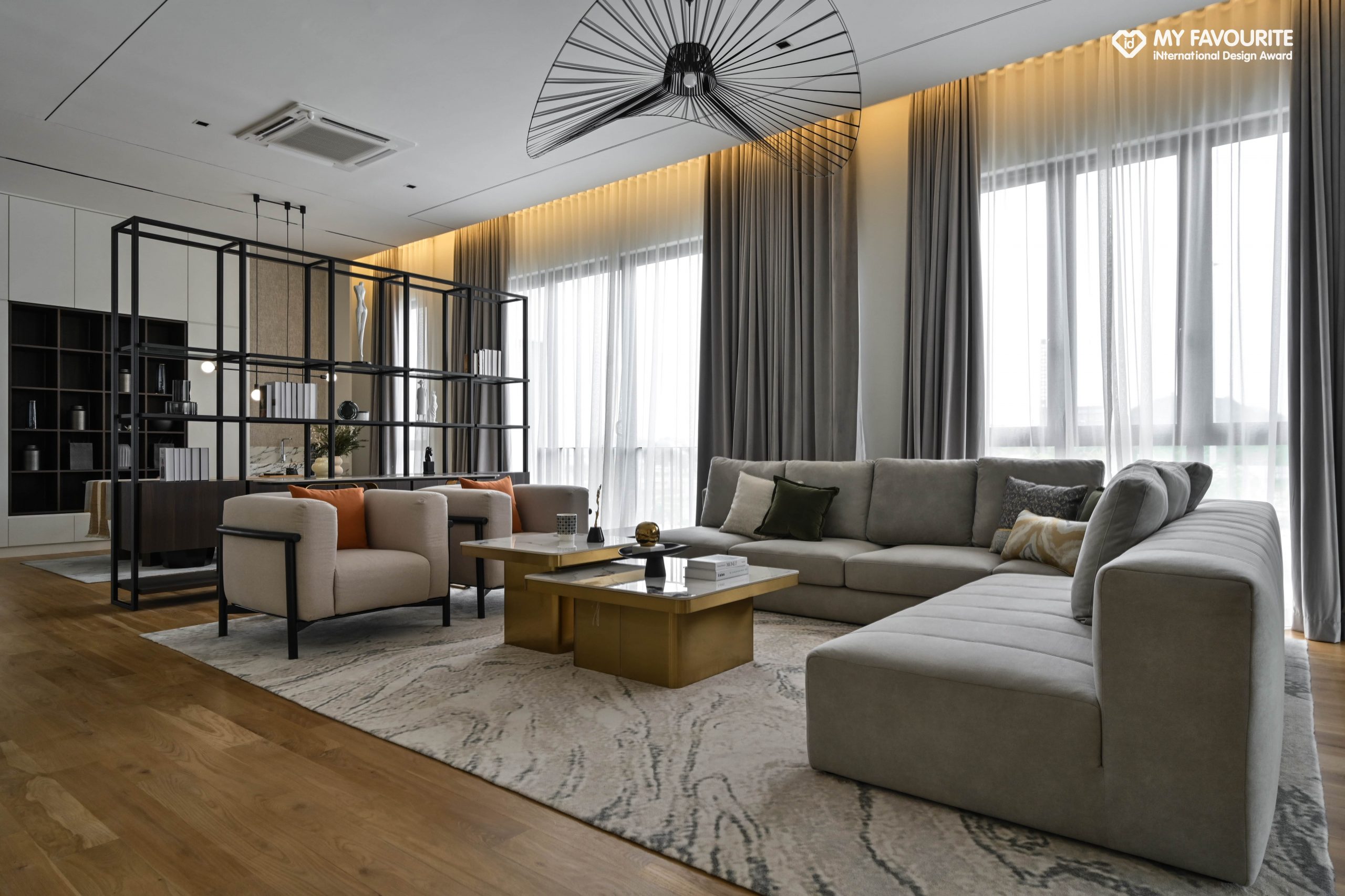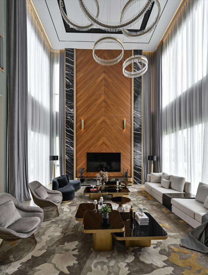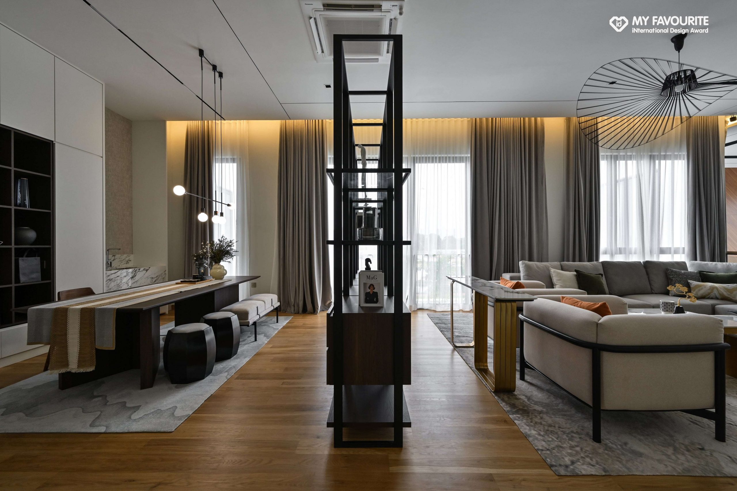 本案座落於芙蓉市高端社區,在這棟由 JCS Design Project 精心擘劃的建案樣板間裡,我們看見了現代人對於「理想生活」的終極想像。設計師 Jack Cheoh 巧妙地利用建築賦予的挑高優勢,並擷取了深邃的木質紋理、靜謐天然石材、溫潤內斂的鍍鈦金屬光澤,再輔以精心挑選的軟裝家具與燈飾,空間於光影之間綻放出高級訂製的優雅質感,構築出一個層次豐富、感官飽滿的現代居所。