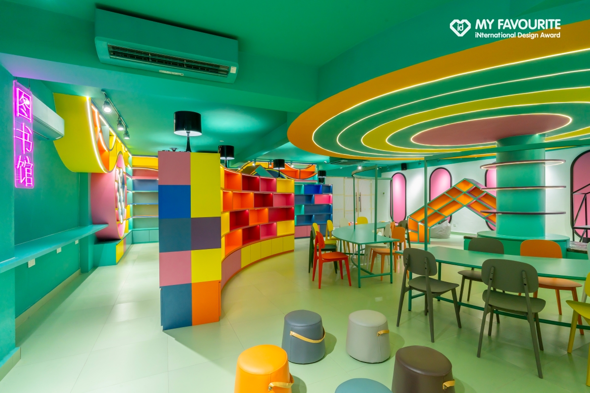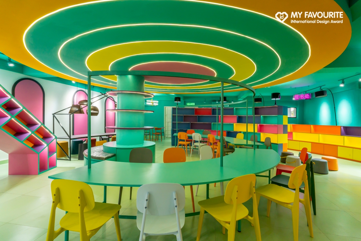 以「翻轉傳統老舊圖書館」為核心理念,將之改造成一座「寓教於樂」的知識遊樂園,透過跳脫框架的家具配置、大膽色彩計劃與互動式設計,重新定義學生與書本的關係。