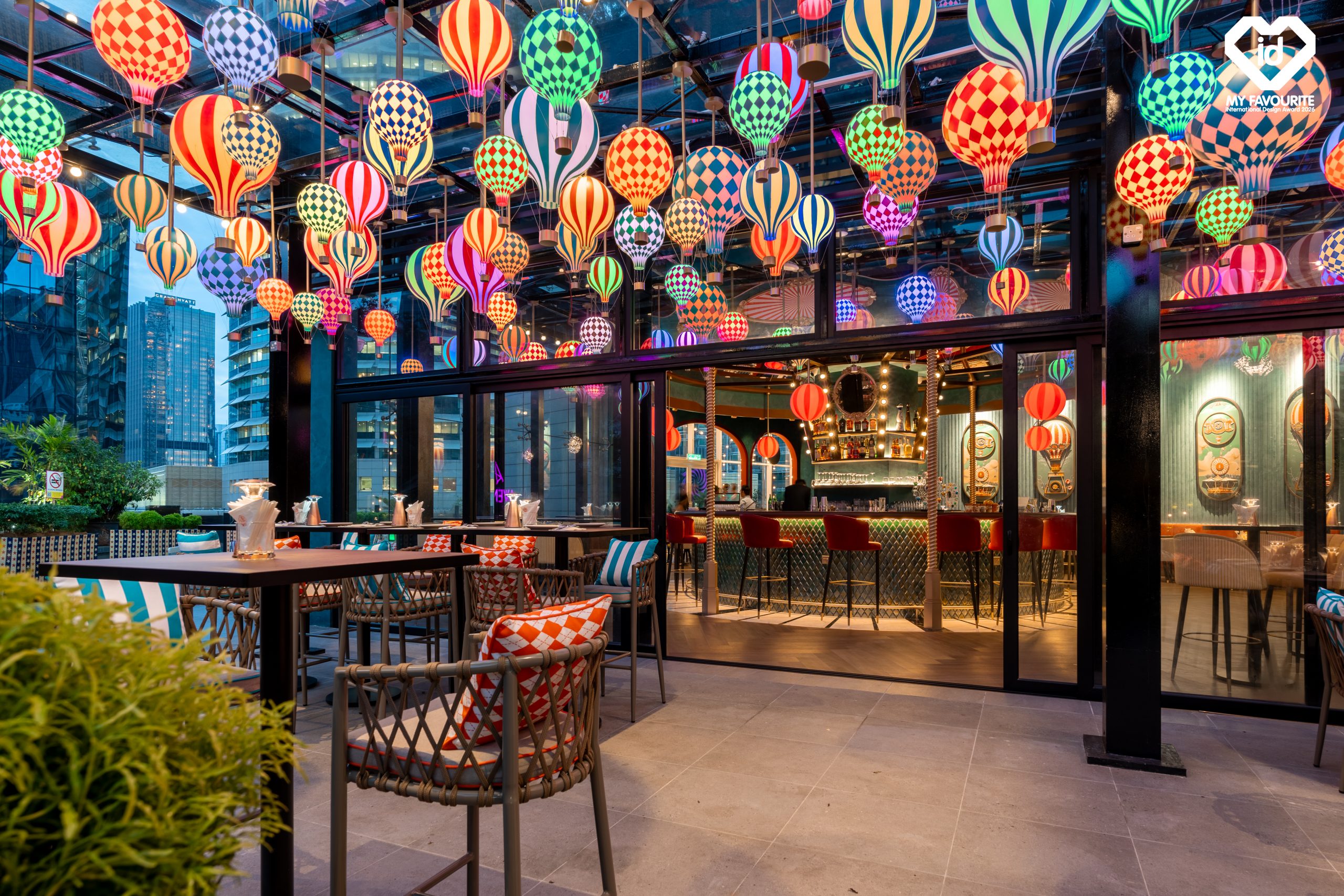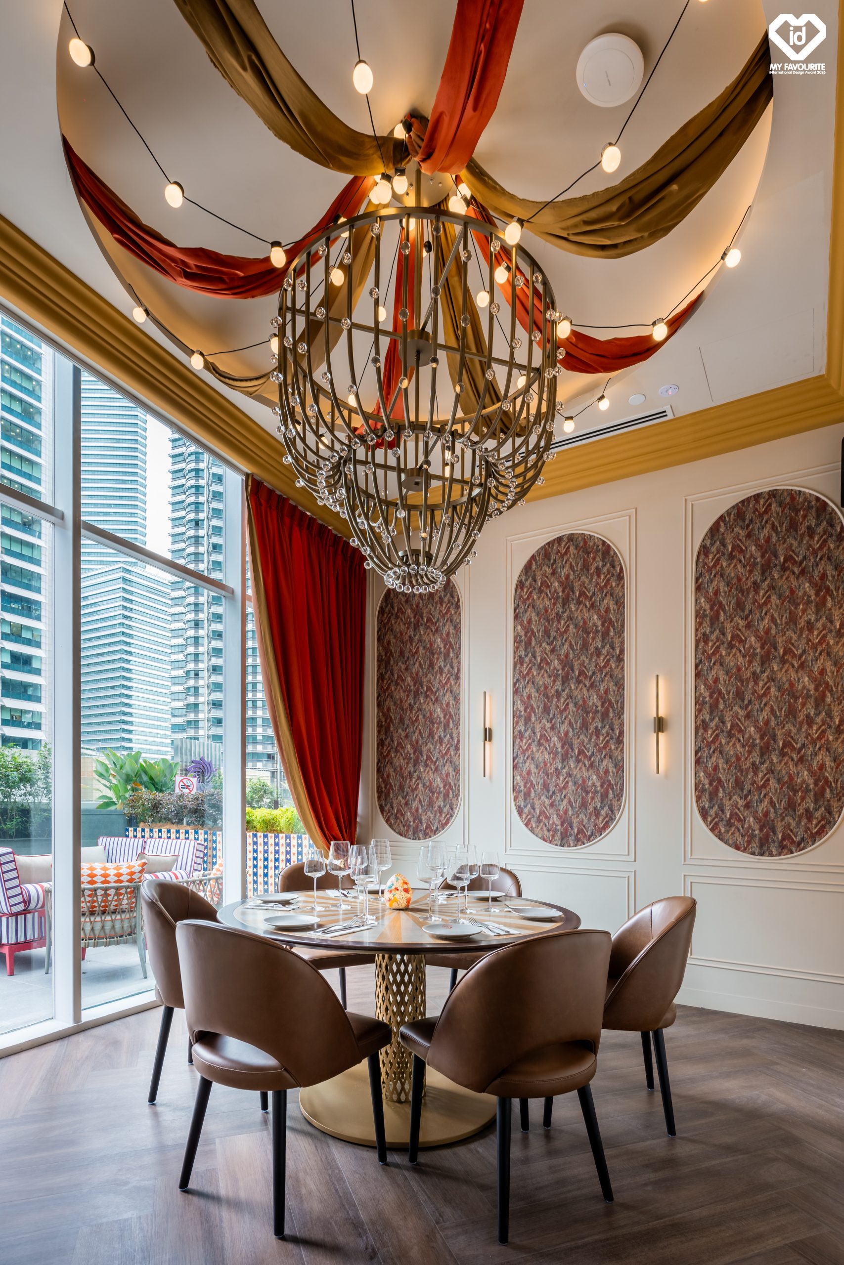中央劇場式吧檯扮演社交核心角色,主題式私密包廂與多樣座位配置則回應聚會尺度的彈性需求。屋頂露台透過通透玻璃立面與可開啟結構,將雙子星塔的城市天際線引入室內體驗,模糊建築內外邊界,使場域與城市景觀形成連續對話。