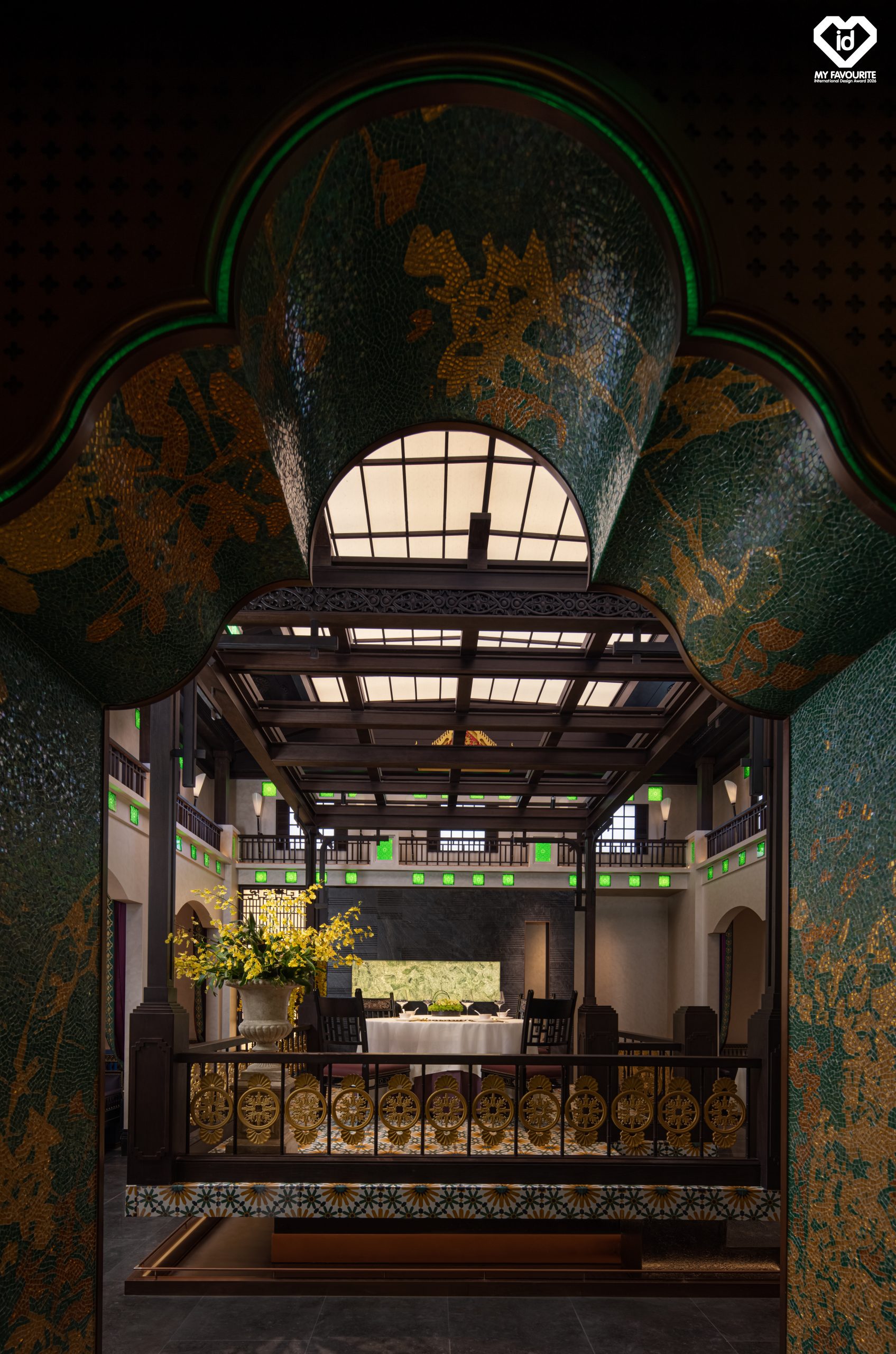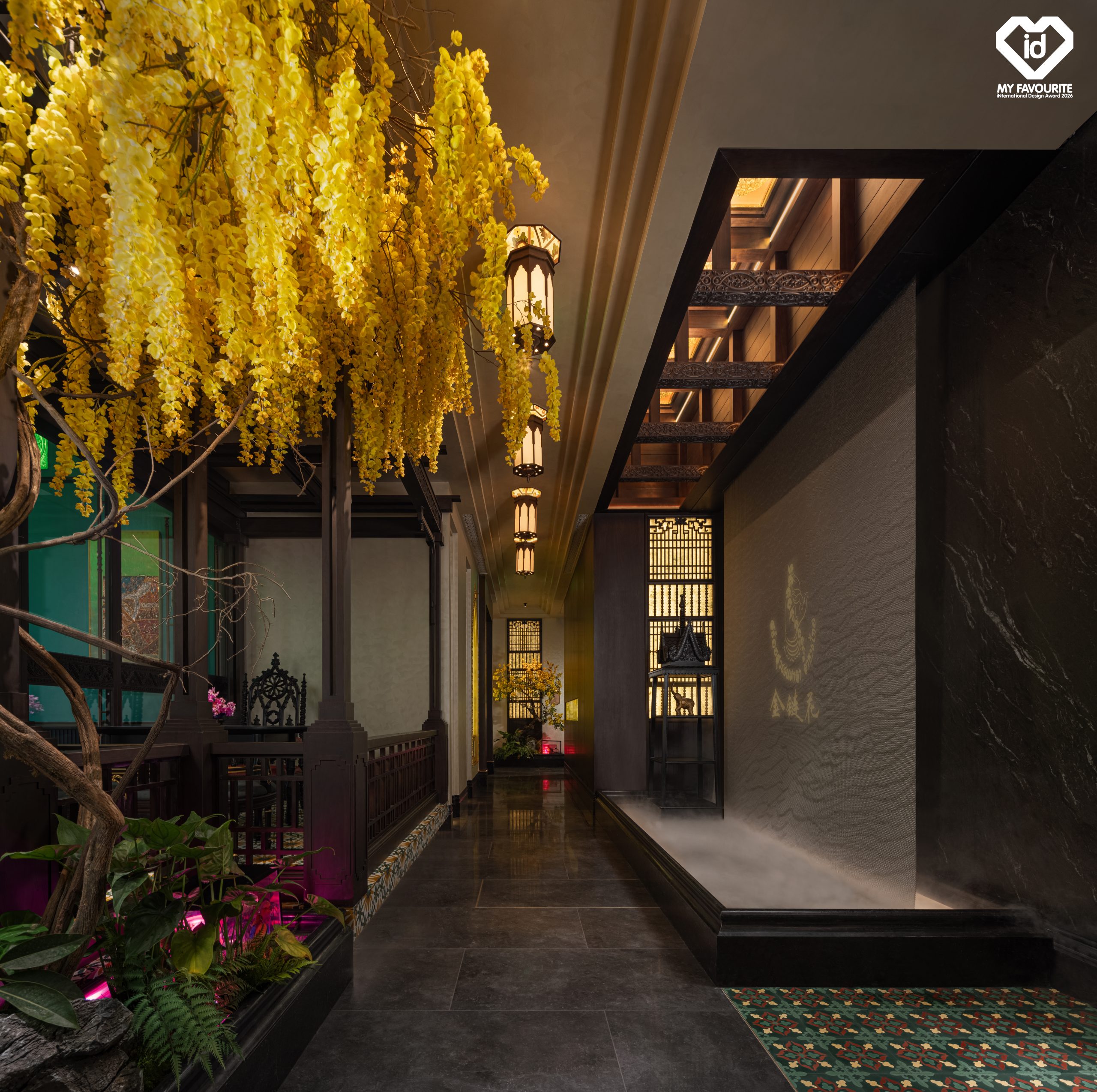 金鏈花作為泰國國花,亦象徵皇室氣度,設計由此延伸其文化寓意,將熱帶風情與東方造園觀念融合於一體。透過景觀、水體與建築元素的交織,餐廳在城市之中形成一處自成一格的場域,讓人於用餐過程中,逐步展開對文化與空間的多重感受。