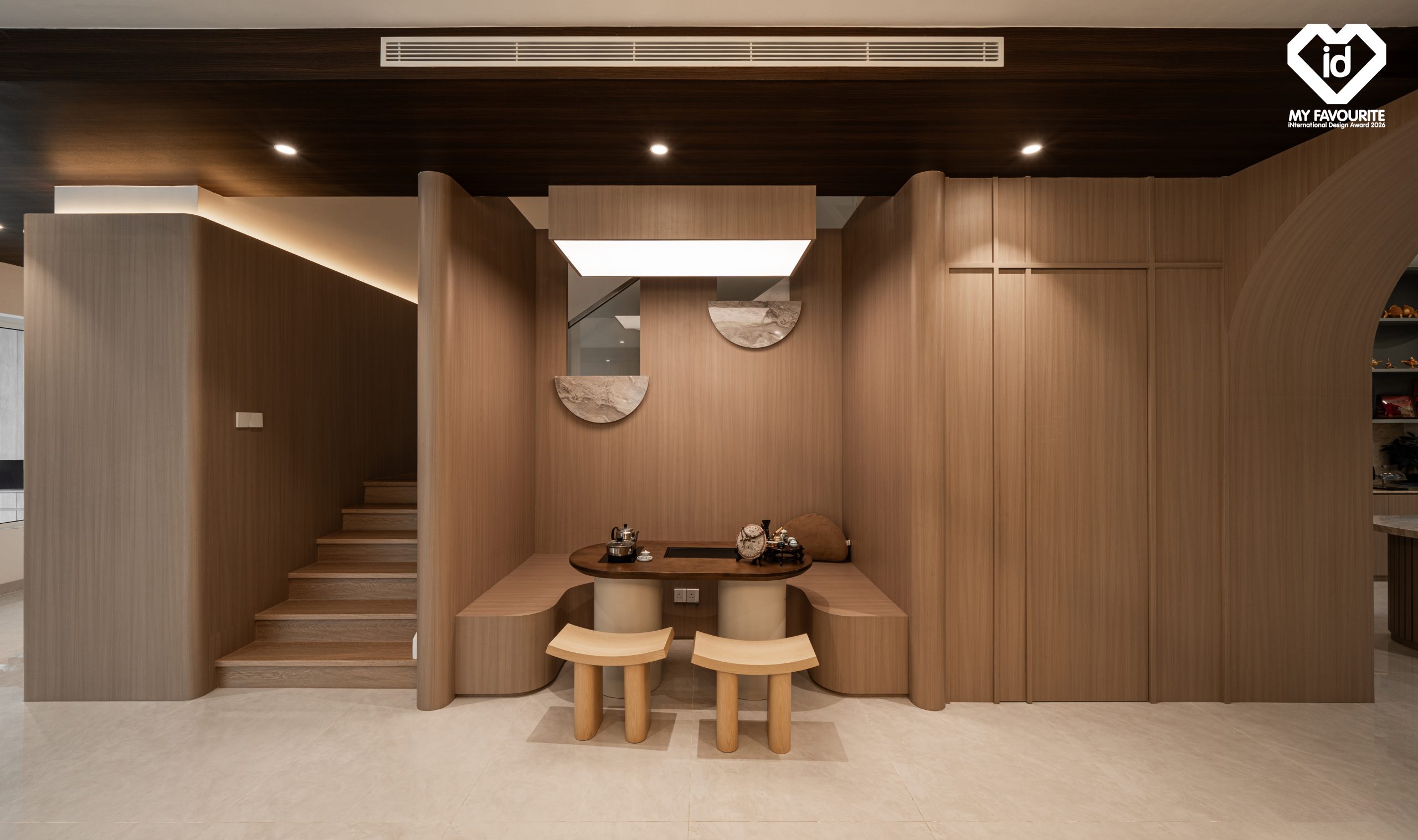 設計核心在於讓居住空間回歸生活本質,透過留白、比例與材質關係,營造適合停留與沉澱的環境。空間中的每一處細節皆經過精準安排,使日常生活在不被打擾的節奏中展開。整體住宅呈現出安定、溫潤、具有質感的空間樣貌,讓居住者在其中能夠放慢步調,回到更單純平衡的生活狀態。