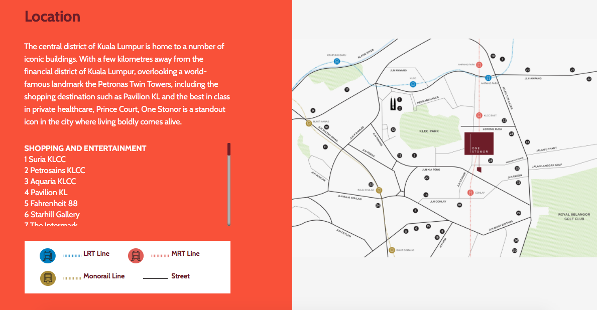 适用于投资地段必须是一个交通规划完善的地段。One Stoner 坐落在吉隆坡市中心,因此你可完全依靠步行或以公共交通工具代步。居住或投资于此,可以让你成为城市中的环保份子,以最环保的方式生活。