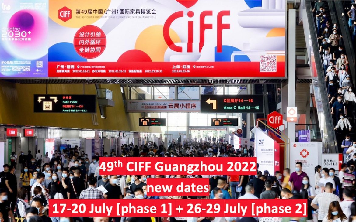 The 49th China International Furniture Fair (CIFF) Guangzhou, one of the biggest furniture events in Asia, will open its door very soon. Due to the ongoing pandemic, the organisers have decided to postpone the event July 17-20, 2022 (Home Furniture/Home Decor/Outdoor Leisure) and July 26-29, 2022 (Office Show and CIFM/interzum guangzhou).