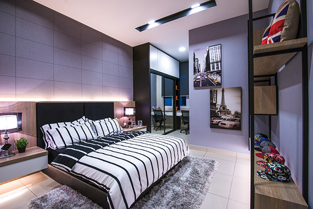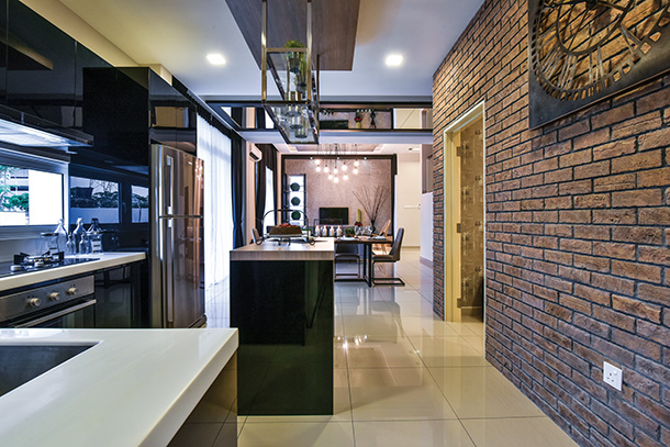 Bold black accents give this home an edge, where the contemporary fusion of raw textures and chic furniture enhance the super cool ambience.