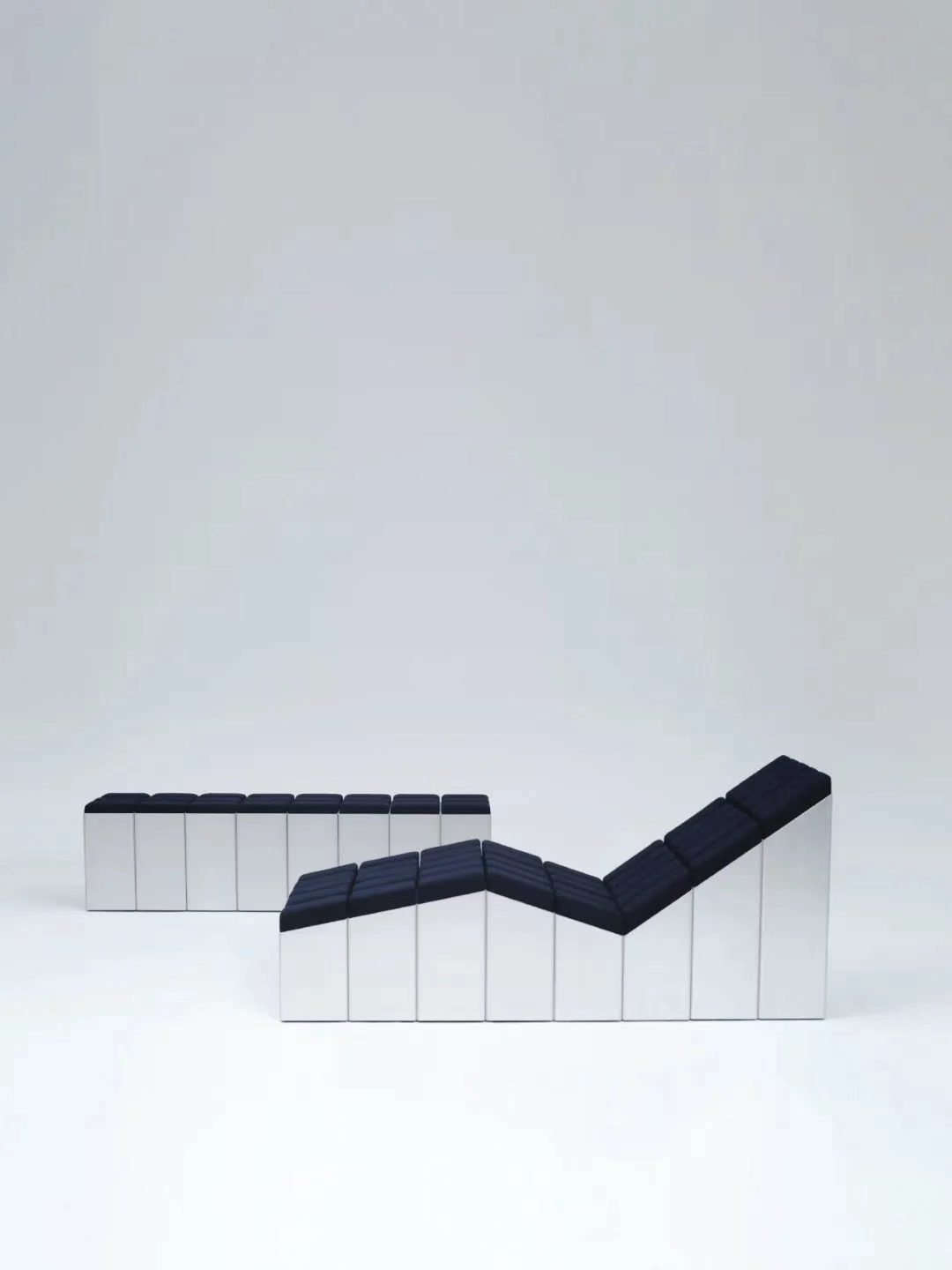 Bold aluminum tubing meets plush upholstery, a study in contrasting textures that bridges industrial clarity and comfort.