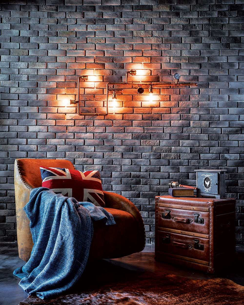 For this home, a dark and sultry palette is used as the backdrop to put together a harmony of vintage chic decorating accessories. In the living room, the composition is kept symmetrical, anchored by whimsical objects and a variety of textures. The bedroom takes on the same cosy approach but in the kitchen and dining, the designers have gone for a more solid appeal with industrial-inspired items.