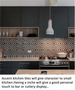 - Create an accent tiles wall or color-painted glass backdrop as area focus wall.