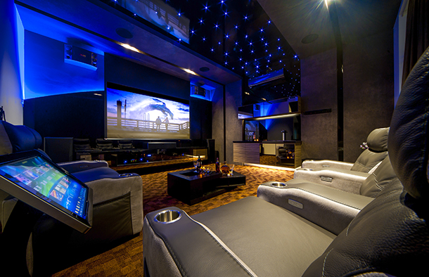 Cool Ambiences. Blue lighting is used in the theatre room to create a dramatic and cool ambience.