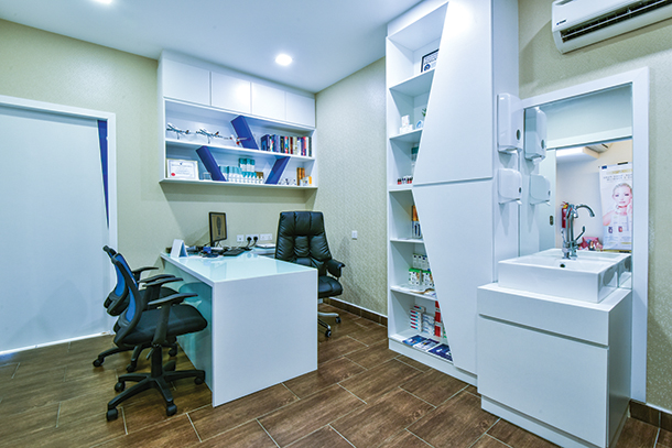 Tranquil Vibes. Keeping the interior colours of the clinic in soothing light tones, customers can feel at ease