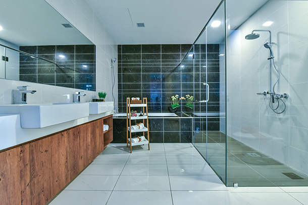 A Tranquil Glow. Pristine and glowing in white, cream and gold tones are used to give this area a glam yet subtly elegant ambience.