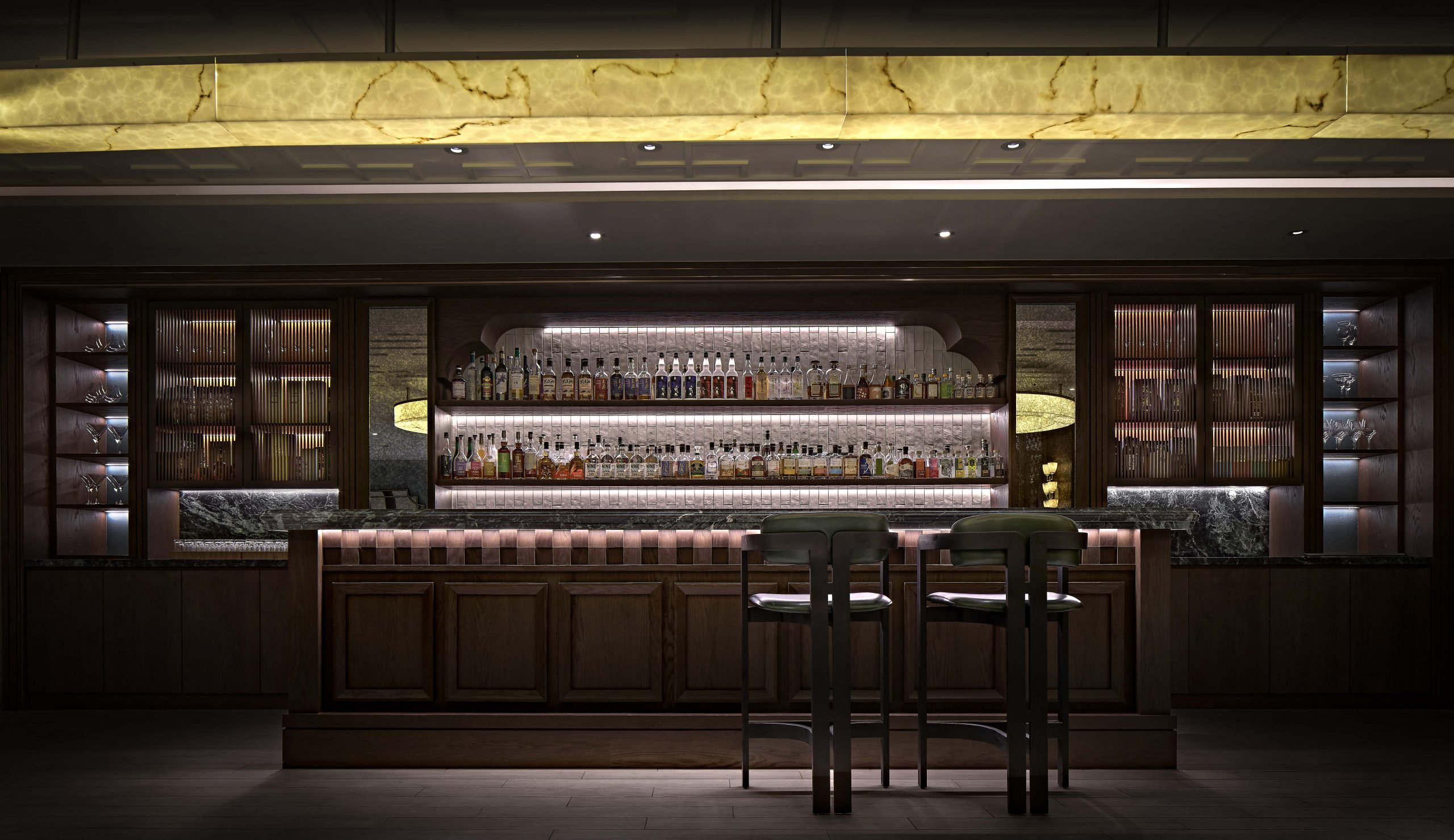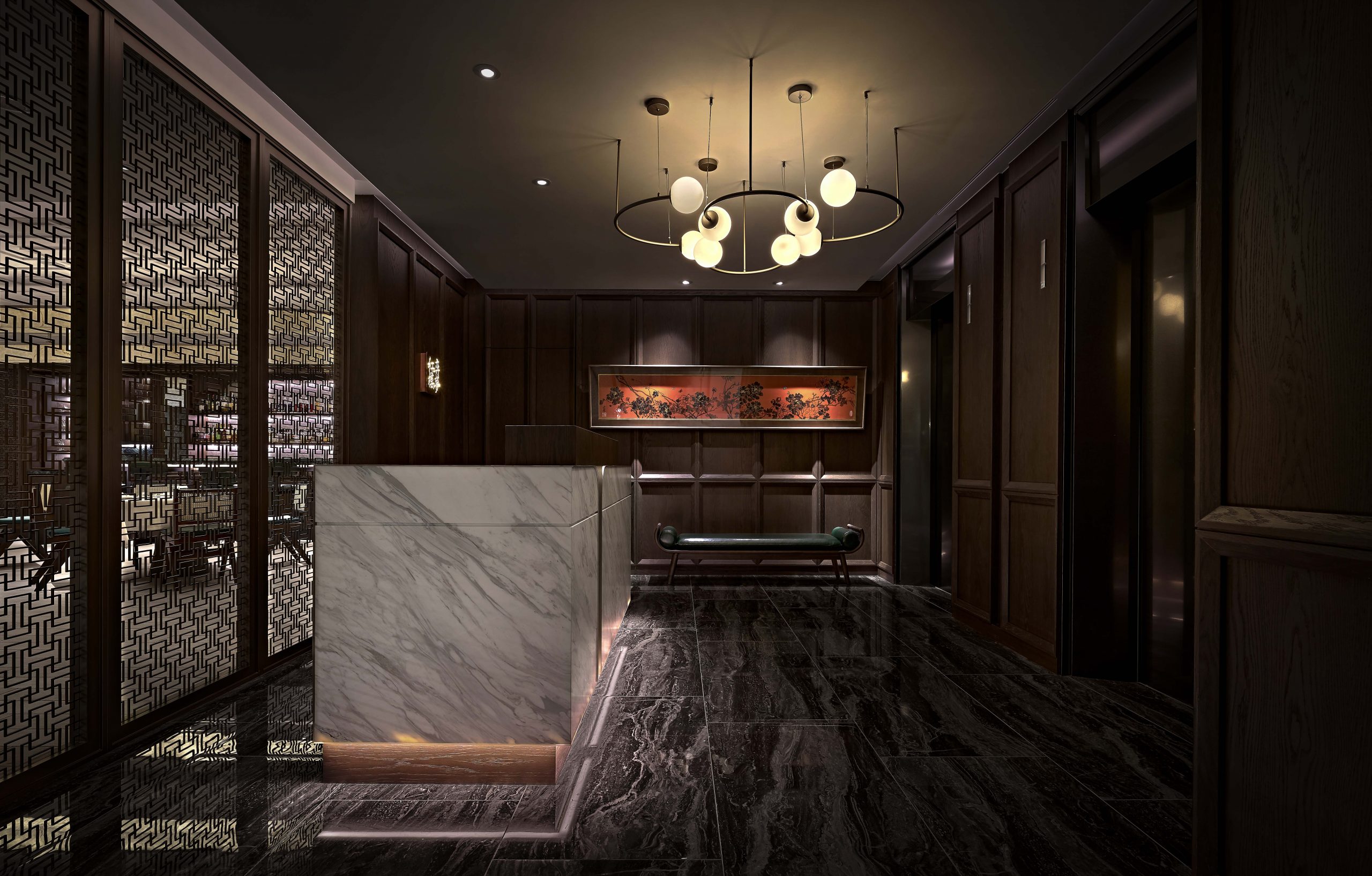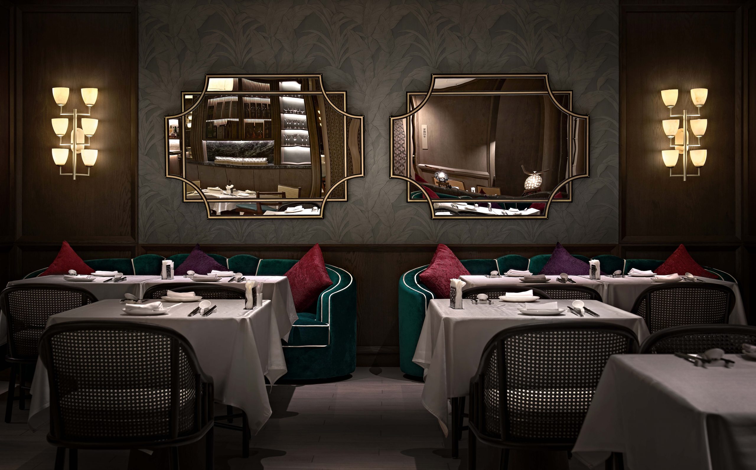This project introduces a soft furnishing approach rarely used by the team, blending contrasting materials, patterns, and décor to capture the eclectic essence of old Shanghai style. Unique statement lighting and adjustable ambient lights create a dining atmosphere reminiscent of early 20th-century interiors.