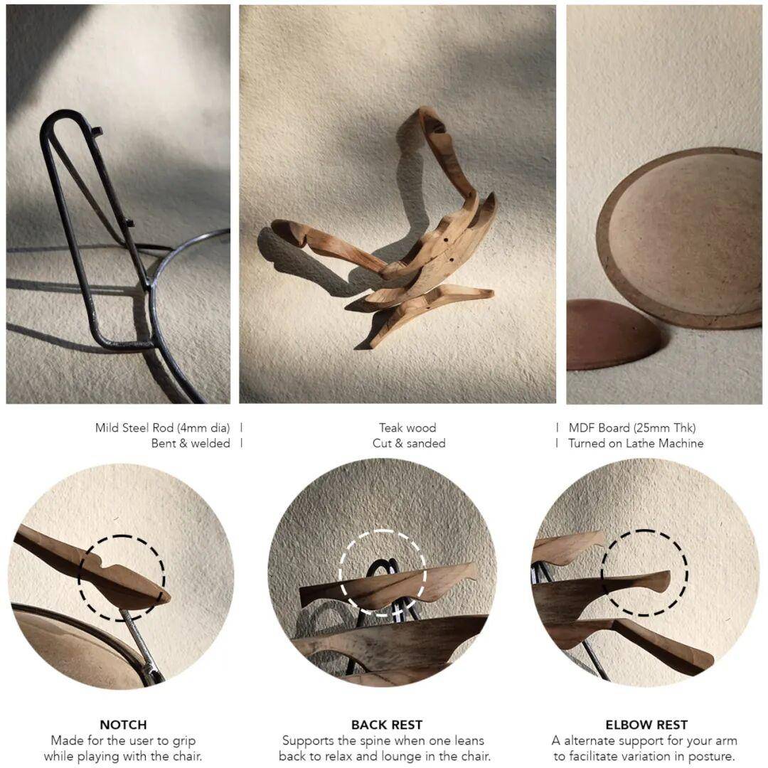 Visually, Sway embraces a calm, natural aesthetic. Crafted in wood with muted tones, its steel structure hides seamlessly within, balancing sturdiness with a soft, organic presence. The result is more than a chair, it’s a quiet invitation to slow down, connect with your body, and rediscover the meditative joy of sitting cross-legged.