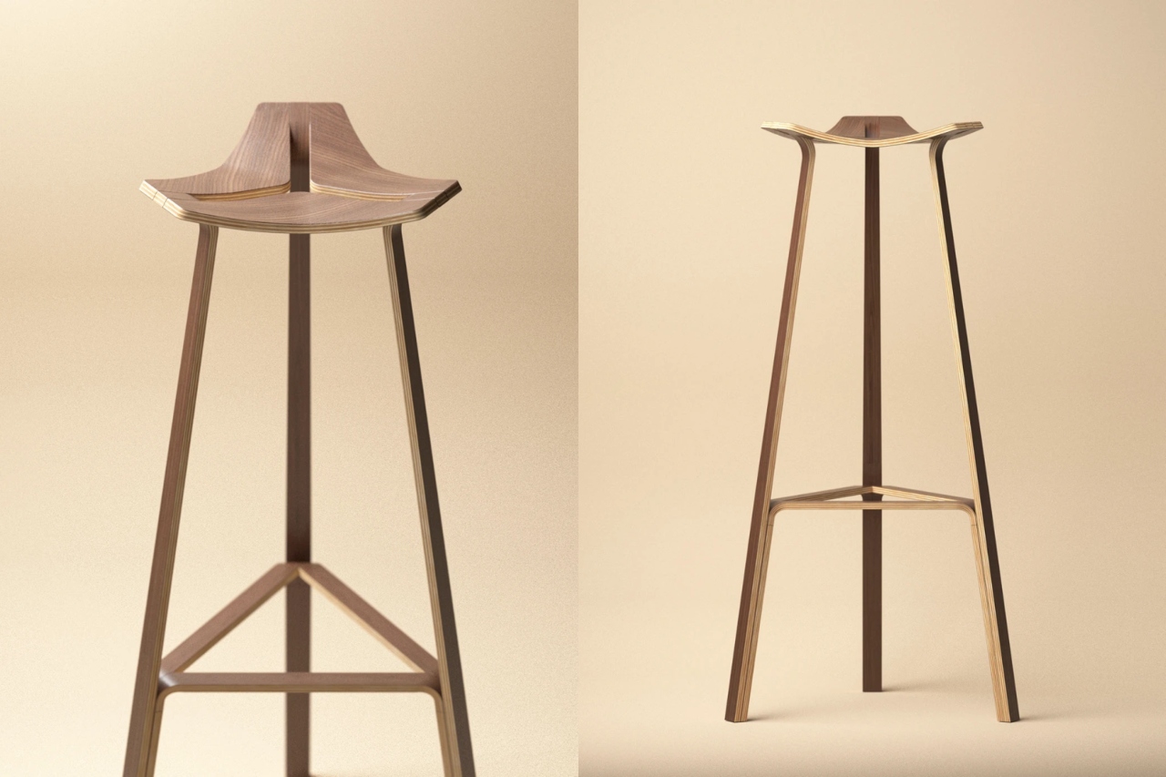 At first glance, the stool’s irregular triangular seat appears playful, almost improvised. Yet every curve serves a purpose: the hollowed-out shape lightens the visual mass, enhances ergonomic comfort, and seamlessly integrates the seat with its supporting frame. Function and ornamentation are no longer separate entities — they coexist, interlocked like threads of a cat’s cradle.