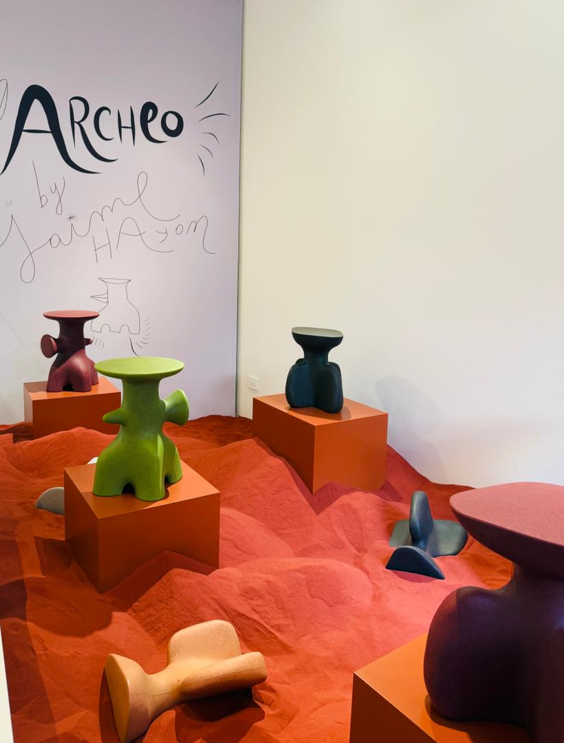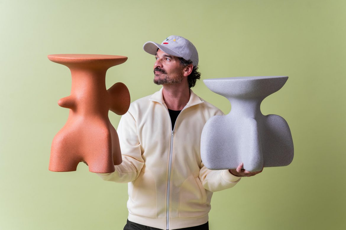 Among the new pieces, Archeo by Jaime Hayon stands out for its sculptural ambiguity, blurring the line between furniture and ancient artefact. Produced in rotational-moulded polyethylene, the coffee tables and stools feature irregular geometries and textured surfaces that evoke objects eroded over time, introducing a tactile, almost archaeological dimension to contemporary interiors.