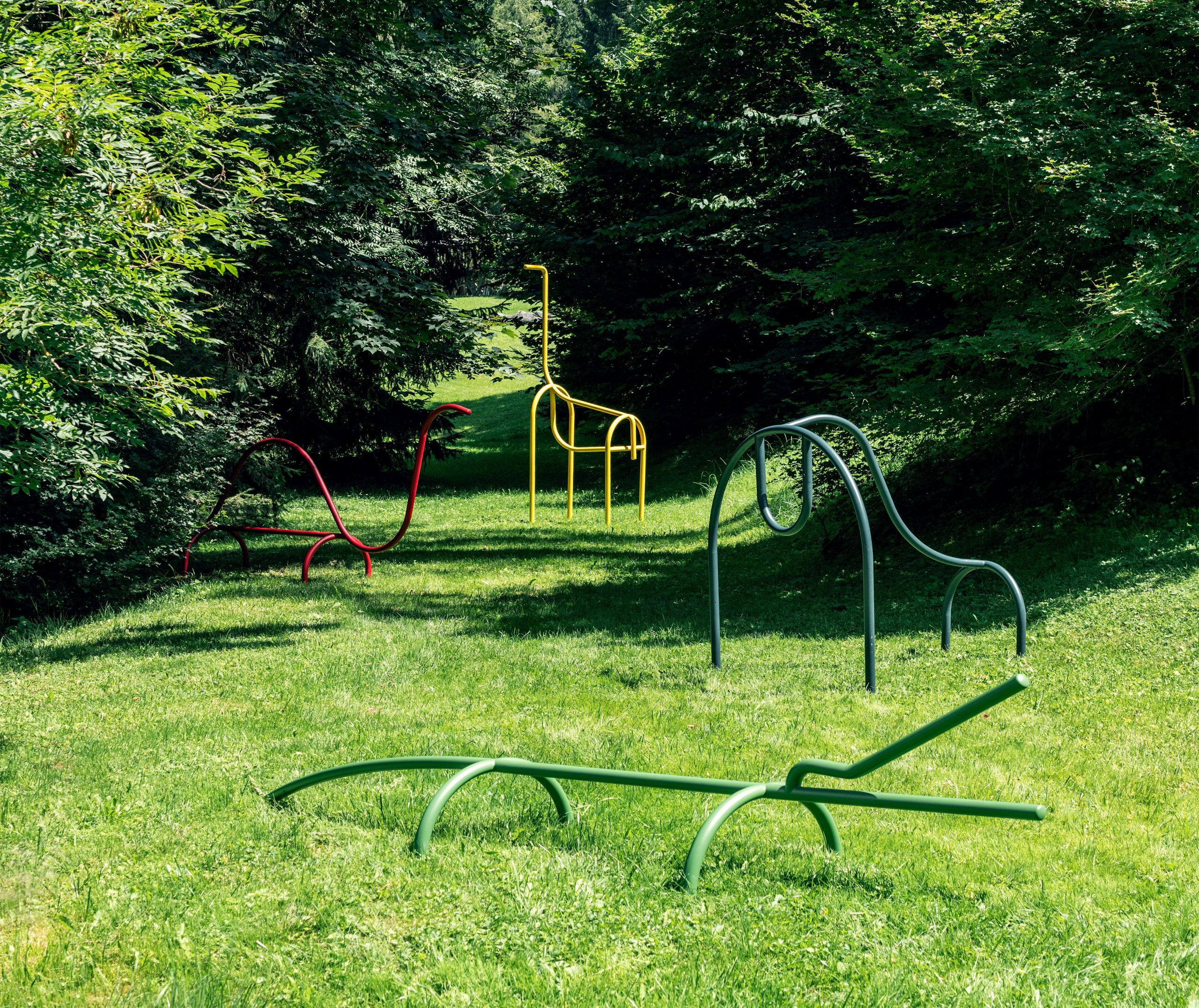 Meanwhile, Animal Factory by Luca Boscardin introduces a playful counterpoint, translating animal forms into stylised animal-shaped sculptures invites interaction, physical training and outdoor life.