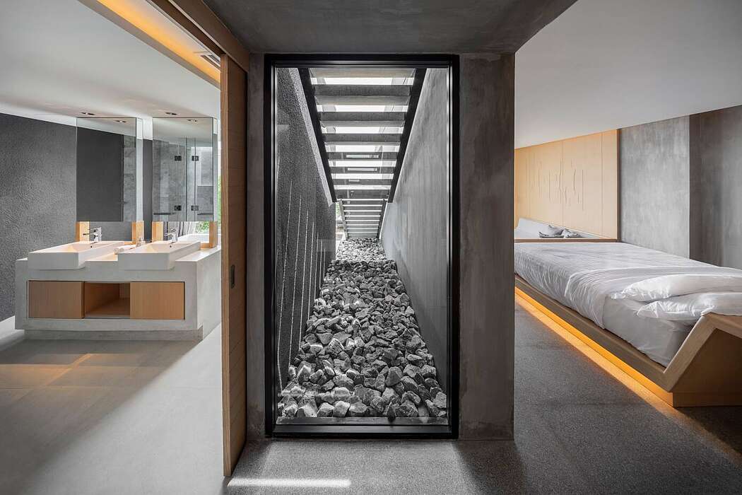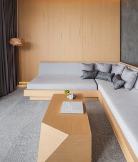 As its name suggests, Mason is a tangible celebration of the rich Thai tradition of masonry and, in particular, the stone carvers of the Ang Sila community. Using stone and concrete as the centerpoint of the design, the studio has conceived the architecture of the hotel as a sculptural form, while still maintaining a clean simplicity that echoes the layered topography of the surrounding terrain. One of the area’s major natural resources, granite, is key to the overall design and is found throughout the hotel, from walls and furniture, to bathroom fixtures and decorative objects. The theme of masonry is also creatively explored through artworks created in collaboration with Dong Sculpture, as well as through the formation of “negative spaces” or voids where indirect lighting sparks spatial interest.