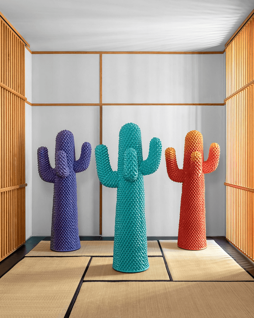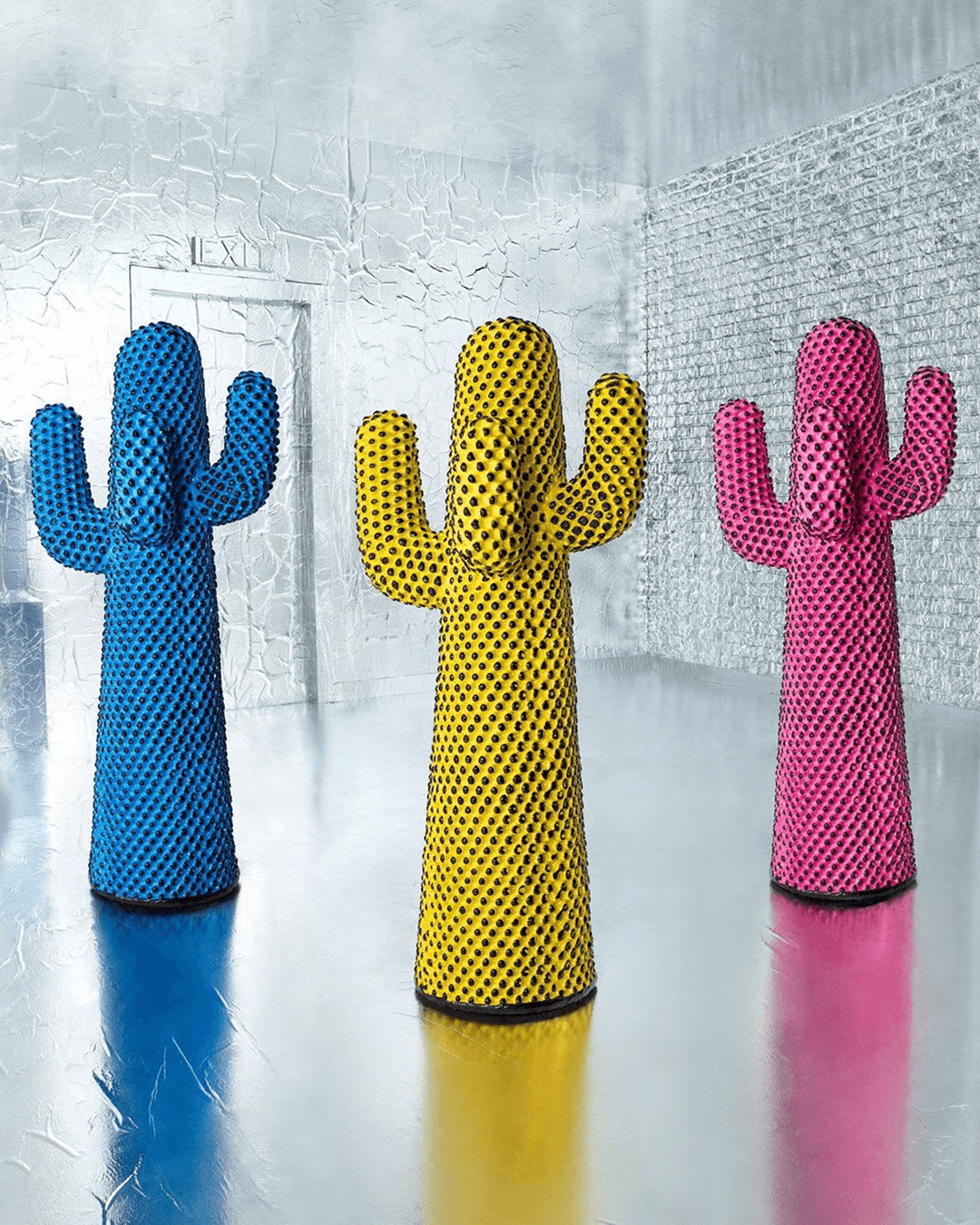 First conceived by Italian designers Guido Drocco and Franco Mello in 1972, the CACTUS® coat stand has long transcended its utilitarian role to become a pop-cultural icon — part sculpture, part satire. Its life-sized form, four outstretched “arms,” and more than 2,000 polyurethane spikes blur the boundary between art and design.